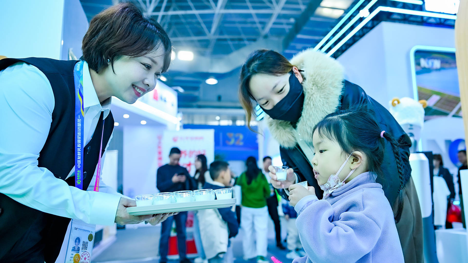 “我是第一次了解羊奶,品尝起来没什么膻味,想让宝宝还有老人也尝试一下这些产品,因为配料表挺干净的,也有营养。”陕西省咸阳市游客张露在品尝“元生爱特”绵羊鲜奶后欣喜地说。