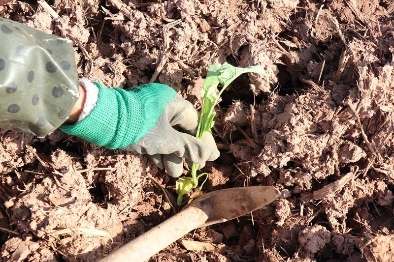 “首先要选油菜的壮苗和大苗来进行移栽,我们栽种的密度是每亩5500株,行距是60厘米,窝距是20厘米,然后把它放在土里压实。”七星关区农业农村局农业技术推广站高级农艺师林英蹲在地头,手把手地向工人们演示油菜移栽的技术要领。